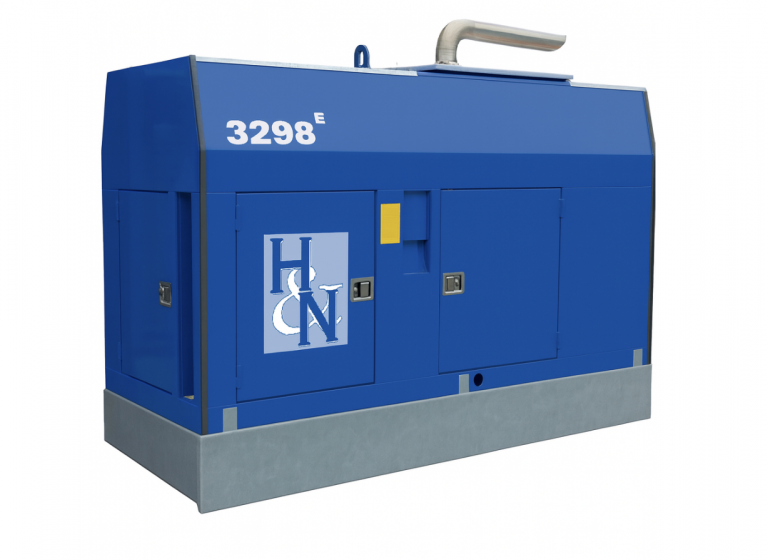 Der Aufbau des Aggregates besteht aus einer robusten Haube mit einer geschlossenen Auffangwanne. Mehrere, abschließbare Türen an den Längsseiten der Haube gewährleisten eine leichte Zugänglichkeit für Wartung / Service.
