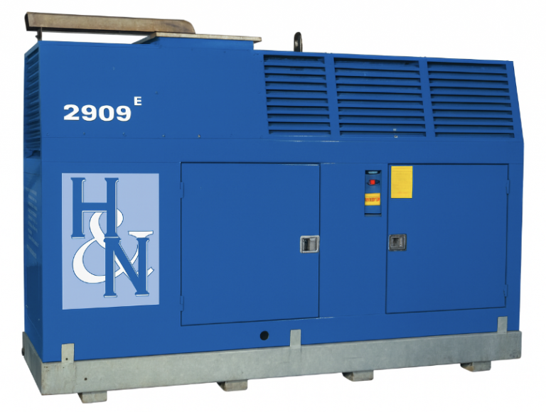 Der Aufbau des Aggregates besteht aus einer robusten Haube mit einer geschlossenen Auffangwanne. Mehrere, abschließbare Türen an den Längsseiten der Haube gewährleisten eine leichte Zugänglichkeit für Wartung / Service.