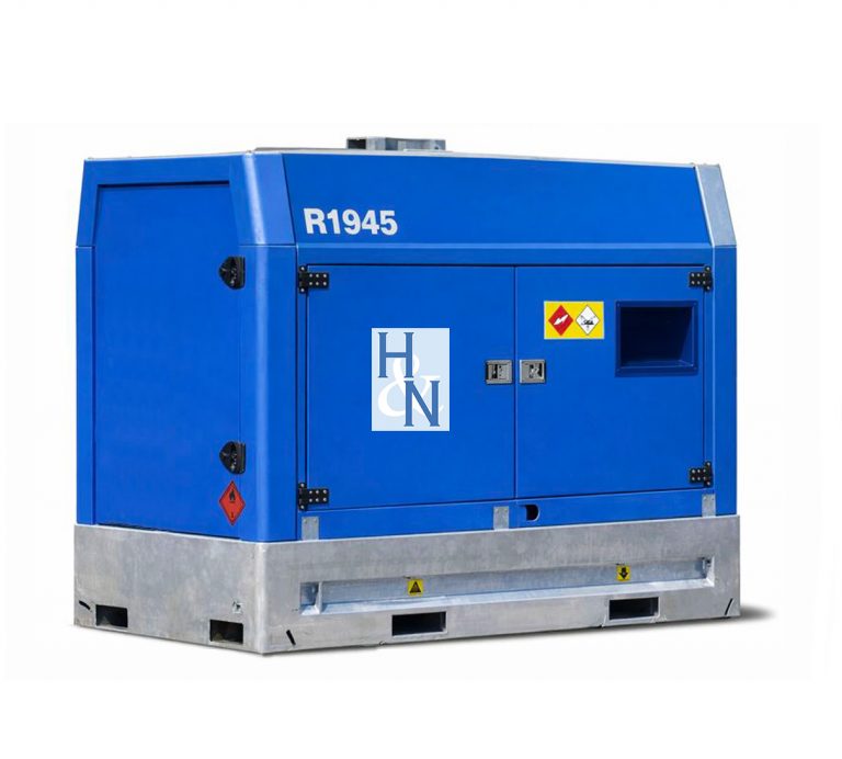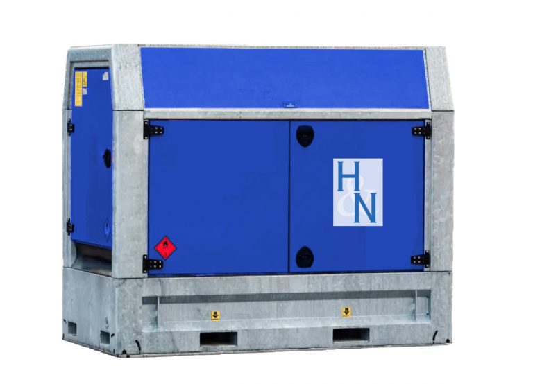 Der Aufbau des Aggregates besteht aus einer robusten Haube mit einer geschlossenen Auffangwanne. Mehrere, abschließbare Türen an den Längsseiten der Haube gewährleisten eine leichte Zugänglichkeit für Wartung / Service.